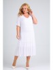 Платье женское полуприлегающего силуэта, слегка расклешенное к низу. Рукава втачные, двухшовные. Верхние срезы деталей рукавов окантованы косой бейкой и соединены между собой встык закрепками. Перед с нагрудными вытачками, выходящие из проймы. Платье с тремя горизонтальными членениями по всей длине. Горловина округлой формы, окантованное косой бейкой. Спинка с застежкой на навесную петлю и пуговицу.