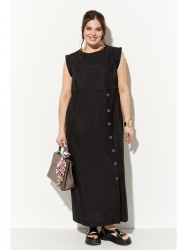 Летнее платье прямого силуэта с подрезом под грудью и декоративной планкой на петли и пуговицы, линия плеча которого немного спущено. Платье выполнено из натурального мягкого льна (не колется) с добавлением стрейча.