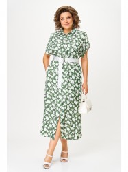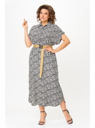 Платье рубашечного типа, свободного кроя выполнено из натуральной вискозной ткани. Универсальность кроя и натуральная ткань сделают его любимым изделием Вашего гардероба в весенне-летнем сезоне. По переду сверху застегивается на пуговицы, снизу сбоку разрез, по спинке длиннее. Рукав короткий цельнокроеный приспущенный на отложенной манжете. Благодаря встречной складке на спинке имеет небольшое клешение. По желанию фиксируется поясом из основной ткани, который идет в комплекте.