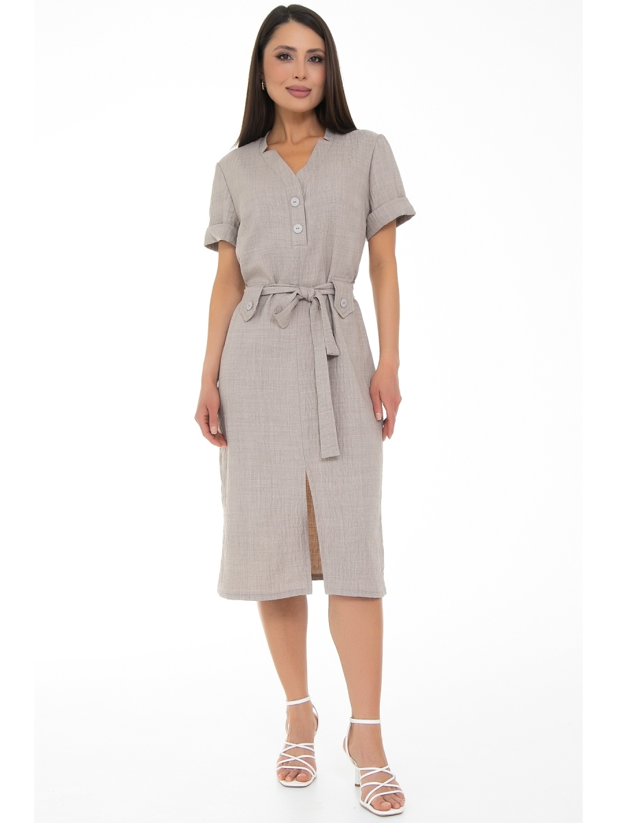 Стильный и удобный вариант летнего платья от Diolche. Верх платья украшает фигурная планка с имитацией застежки на пуговки. Горловина спинки обработана внутренней обтачкой, по низу платья впереди пикантный разрез.Рукава втачные короткие на манжетах. Модель выполнена из вискозной ткани с эффектом жатки.