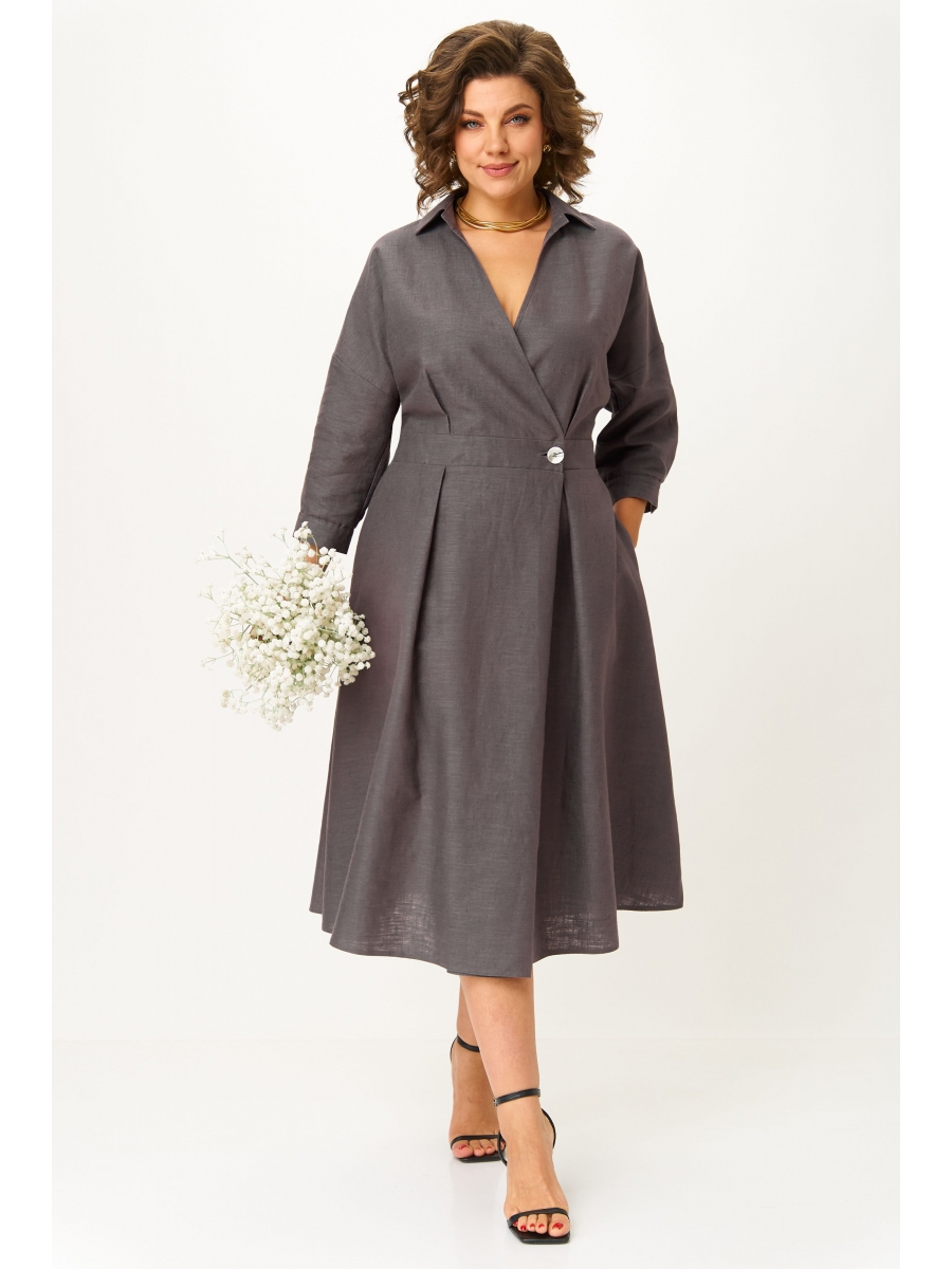 Элегантное женское платье из натуральной ткани (премиальный лен и хлопок) необычного кроя станет изюминкой вашего гардероба. Платье полуприлегающего силуэта, отрезное по линии талии со спущенным плечом. Рукав 3/4 длинный на отрезной манжете. По полочке идут защипы-складки в верхней и нижней частях, запах - на петли и пуговицы по подрезу. По нижней части платья запах идет в виде складки. По спинке кокетка со складкой, по подрезу вставлена резинка. Юбка-полусолнце с односторонними складками по полочке, по бокам карманы. По горловине воротник на отрезной стойке.