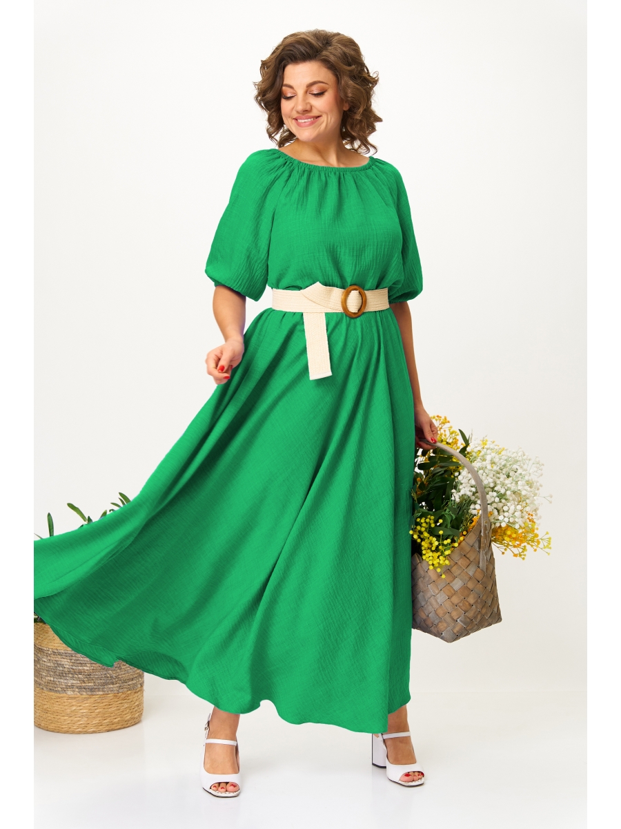 Платье макси свободного силуэта - лучший выбор на лета. Рукав реглан 3/4 длины, низ на резинке. Горловина собрана на резинку. Платье отрезное по линии талии, на резинке. Юбка полусолнце.