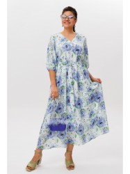 Воздушное и невесомое, словно летнее утро, это платье от Анелли очаровывает своей мягкой женственностью. Свободный силуэт-трапеция струится вдоль фигуры, даря комфорт и легкость каждому движению. V-образный вырез горловины подчеркивает изящество линий, а втачные рукава три четверти с нежной резинкой по низу добавляют образу утонченную аккуратность.