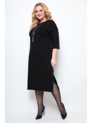 Эффектное, вместе с тем, прекрасно подходящее для повседневной жизни платье. Комфортный, прямой силуэт мягко сядет по фигуре и не будет сковывать ваших движений. Платье выполнено из приятного на ощупь трикотажа, имеет спущенный рукав - длинной 7/8, по переду изделия - карман. Украшением платья служит боковой разрез, который оформлен молнией. В комплекте с платьем идет цепочка с кулоном. Цепочка поможет украсить изделие не только в качестве вечернего образа, но будет и уместна в будние дни. Платье прекрасно сочетается разной по стилю обувью.
