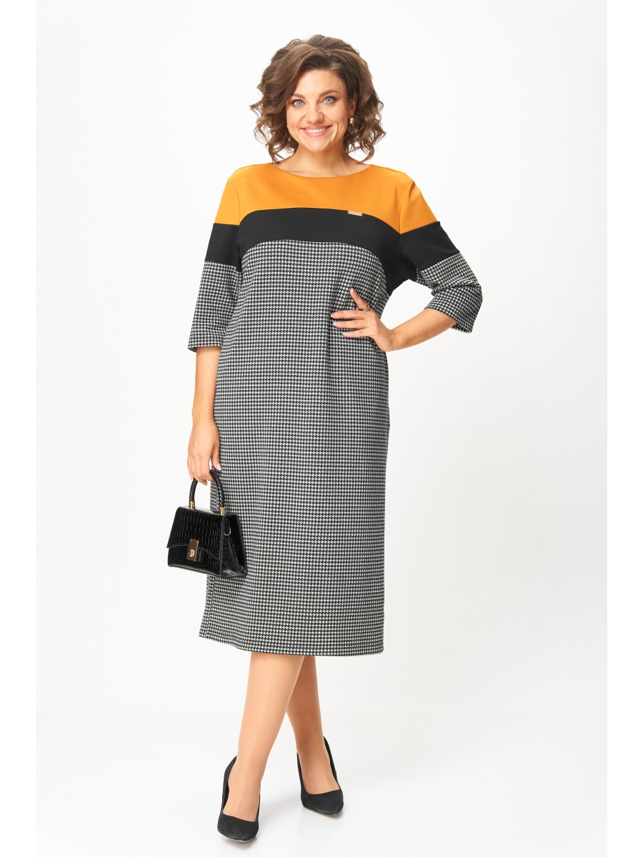 Это платье создано для женщин, которые выбирают комфорт и элегантность каждый день. Плотный трикотаж высокого качества мягко обнимает фигуру, не теряя форму, не вытягивается и не просвечивает. Контрастное сочетание горчичного, чёрного и классического принта “гусиная лапка” визуально стройнит и освежает образ. Рукав ¾ и длина миди делают модель практичной и универсальной — удобно и в офисе, и на прогулке, и на встрече.