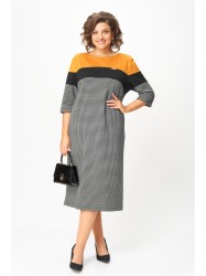 Современное платье из плотного комбинированного трикотажа.