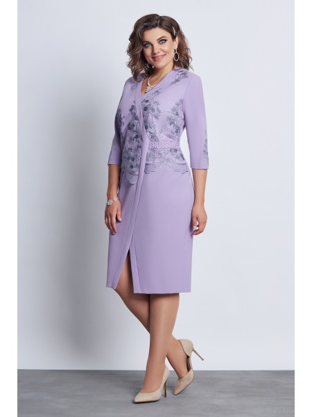 Нарядное женское платье, выполнено из текстиля и кружева. Горловина платья V-образной формы с притачной планкой, также на лифе выполнены ассиметричные подрезы из кружева и втачным поясом. Юбка платья немного заужена к низу. Рукав втачной, оптимальной длины, из кружева. Эффектное нарядное платье прекрасно подчеркнет фигуру и украсит ваш образ!