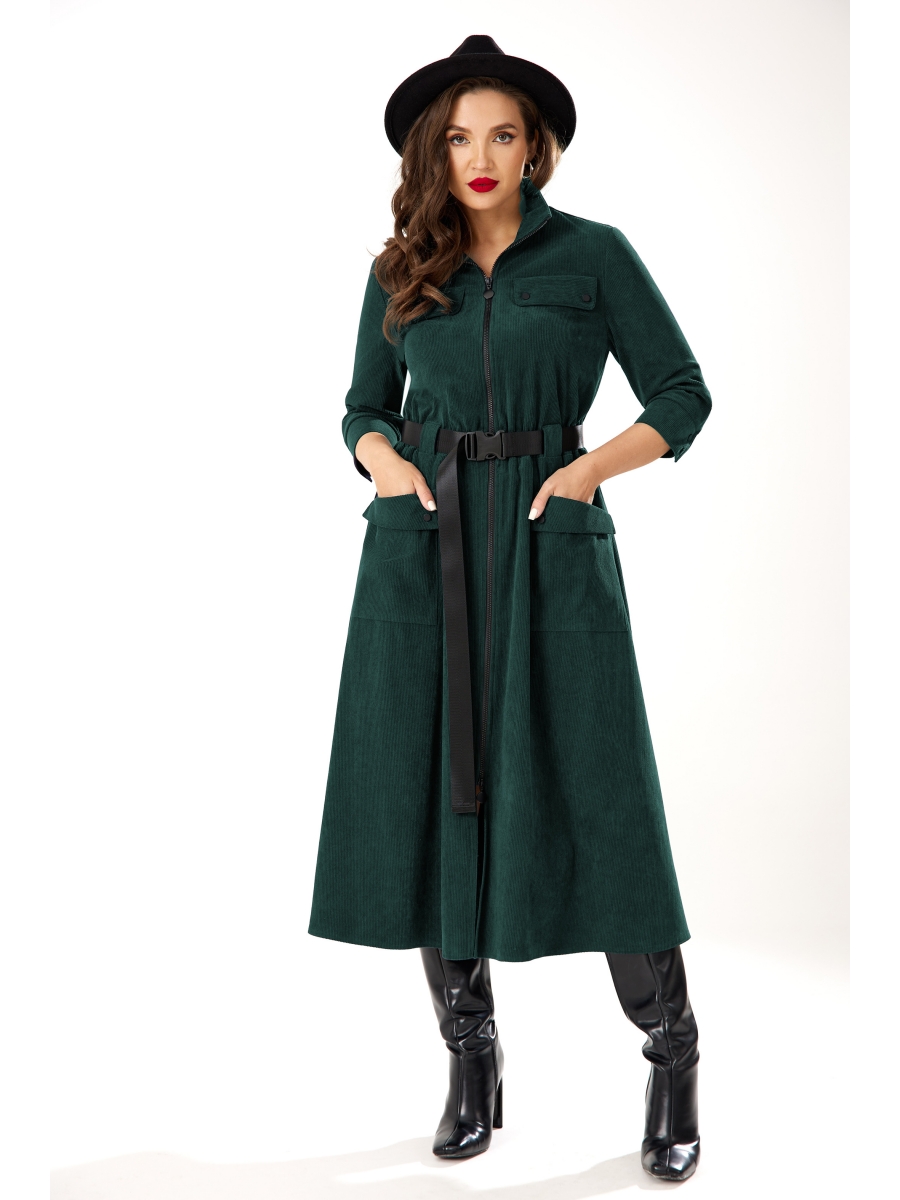 Стильное и элегантное платье выполнено из высококачественной ткани Вельвет. Платье по переду с застежкой на молнию (100 см), накладными карманами и декорировано пришивными пуговицами. По талии платье декорировано съемным поясом с пряжкой-застежкой и резинкой, что придет модели особый шарм. Рукав платья втачной, с манжетой и застежкой на две пуговицы. Горловина платья с воротником стойкой. Платье без подкладки.