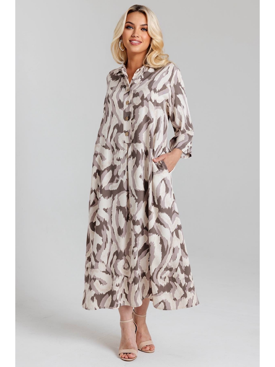 Летнее женское платье из штапеля с карманами. Женское платье из штапеля – идеальный выбор для женщин, стремящихся подчеркнуть свою элегантность и стиль в любой ситуации. Это платье прекрасно подходит как для повседневных образов, так и для более торжественных мероприятий: вечеринок, праздников и офисных встреч. Свободный крой не стесняет движений, обеспечивая комфорт на протяжении всего дня.Модель платья- А силуэт, что делает изделие универсальным. Отложной воротничок и планка с пуговицами придаёт платью классический вид, удлиненные рукава, которые фиксируются патами, добавляют интересный акцент и позволяют регулировать длину рукава по вашему желанию. Встречная складка под планкой спереди и на спинке придает свободу движения при этом сохраняют утонченный силуэт.