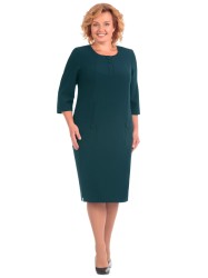 Повседневное текстильное платье полуприлегающего силуэта. Перед платья с фигурными рельефными швами, исходящими из горловины, в которых обработаны рамочки и на которые настрочены накладные карманы. Внизу рельефов находятся разрезы. Горловины круглой формы с планкой поло на 2 петли и пуговицы. Спинка платья с плечевыми вытачками и средним швом, в котором обработана застежка молния. Рукав втачной одношовный 3/4.