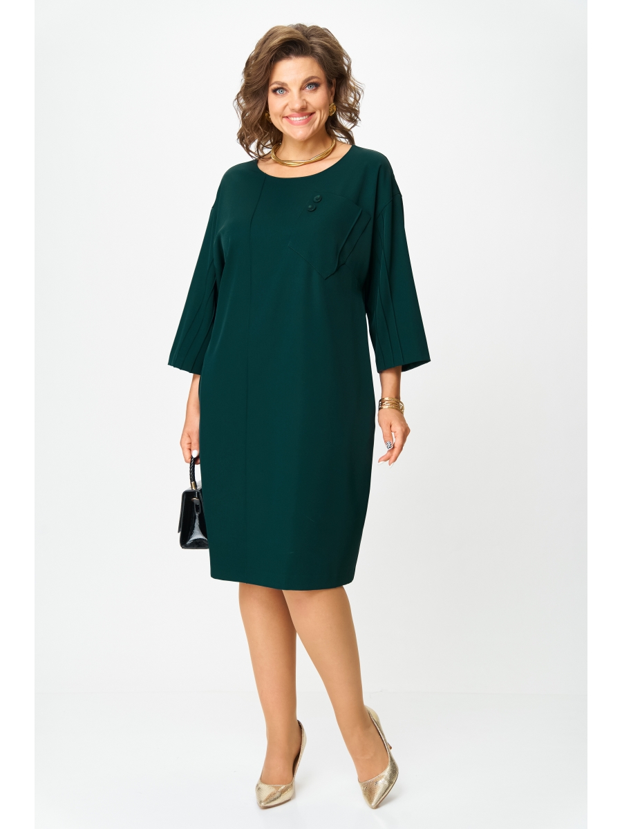 Оформить заказ →Платье женское, без подкладки. Выполнено из плательно костюмной ткани средней плотности. Силуэт прямой, линия плеча чуть спущена. По переду выполнен декоративный карман с защипом и пуговицами. По правой половине переда застрочен защип по всей длине. По рукаву застрочены декоративные защипы. Карманы в боковых швах. Спинка прямая со среднем швом без особенностей.