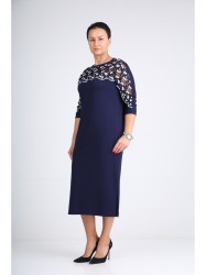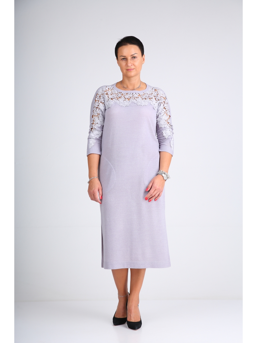Платье полуприлегающего силуэта, выполнено из мягкого трикотажного полотна. Рукав реглан цельнокроеный "летучая мышь". В боковых швах потайные карманы. Полочка декорирована отрезной кокеткой из кружева. Горловина круглая, обработанная руликом. В боковых швах разрезы.