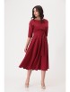 Платье нарядно-повседневное из плотной плательной ткани. Лиф «летучая мышь». Летящая юбка «полусолнце», по талии эластичная тесьма. Без застежки. Горловина овальная. Рукав ниже локтя зауженный к низу. Пояс длинный завязывается на талии. Украшение (разные виды бус и кулонов) входит в комплект.