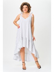 Сарафан женский летний выполнен из легкой и дышащей хлопковой ткани. Его расширенный к низу крой обеспечивает свободу движений и добавляет образу легкости. Широкие регулируемые бретели не только обеспечивают комфортную посадку, но и позволяют подстроить сарафан под индивидуальные предпочтения. Они завязываются на стильный бант, придавая образу игривость и женственность. V-образная горловина создает эффектный силуэт подчеркивая линию шеи и декольте. Средний шов на спинке. Фигурная линия низа с притачной оборкой придает сарафану романтичный вид создавая легкий и воздушный силуэт