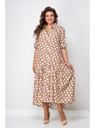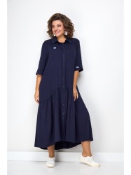 Платье халат в стиле бохо, для современных женщин свободного кроя. По низу изделия идет широкий волан, по переду планка с застежкой на пуговицах. Воротник рубашечного типа по стойке. Рукав втачной с широкой манжетой. Длина рукава регулируется от 7-8 до 3-4 за счет манжета. Низ изделия ассиметричный чуть длинее сзади. Платье может носится с поясом и без.