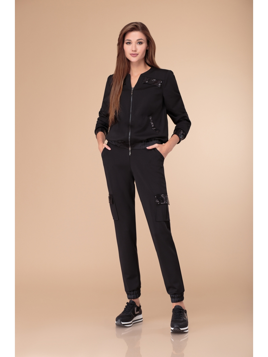 Брюки на манжете, пояс на резинке. На брюках два косых кармана. Вверху и выше колен по два накладных кармана.