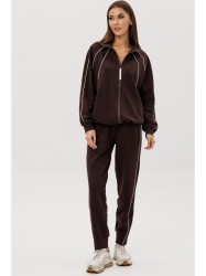 Современный костюм в стиле спорт-кэжуал — идеальный баланс комфорта и актуального дизайна. Модель выполнена из мягкого трикотажного полотна с добавлением хлопка, обеспечивающего приятные тактильные ощущения и свободу движений.