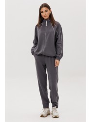 Современный костюм в стиле спорт-кэжуал — идеальный баланс комфорта и актуального дизайна. Модель выполнена из мягкого трикотажного полотна с добавлением хлопка, обеспечивающего приятные тактильные ощущения и свободу движений.