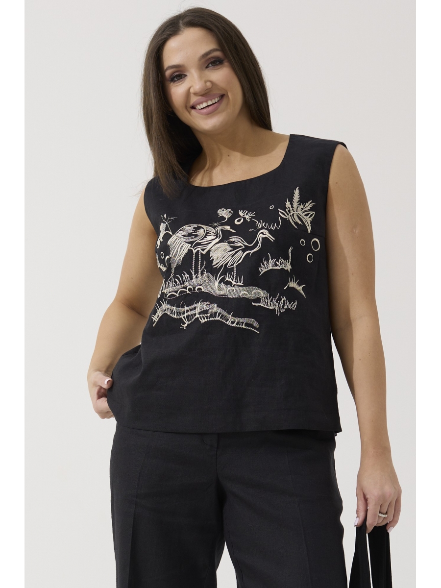 Женский льняной топ Ma Сhérie. Полочка и спинка цельные. Спереди топа дизайнерская вышивка.