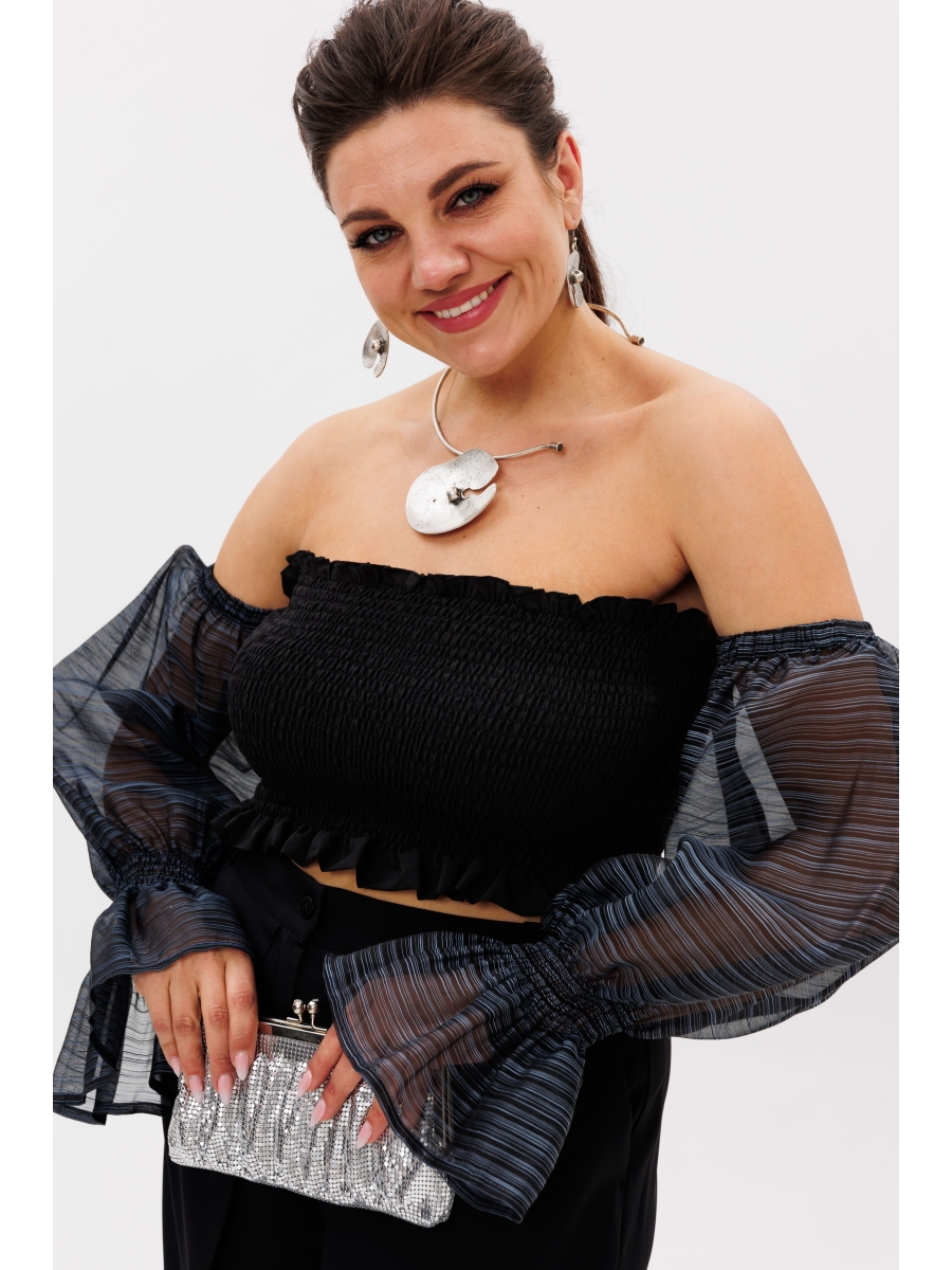 Укороченный крой и ликра по всей длине блузы придают модели особый шарм и индивидуальность.