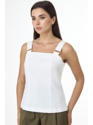 Этот топ с полуприлегающим силуэтом создан для тех, кто ценит комфорт и лаконичную эстетику. Рельефные линии по переду и спинке подчеркивают форму, добавляя образу утонченность. Широкие бретели с декоративными деталями придают лёгкую изысканность, а застежка на молнию по спинке обеспечивает удобство при надевании.