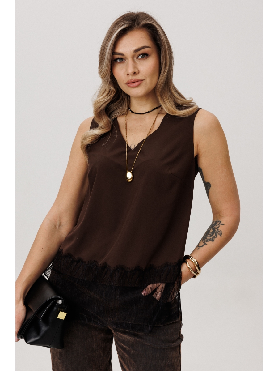 На модели в топе цвета «ледяной какао» шикарная рубашка 1663.