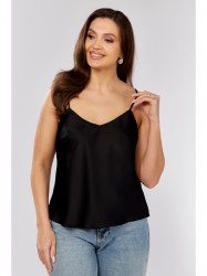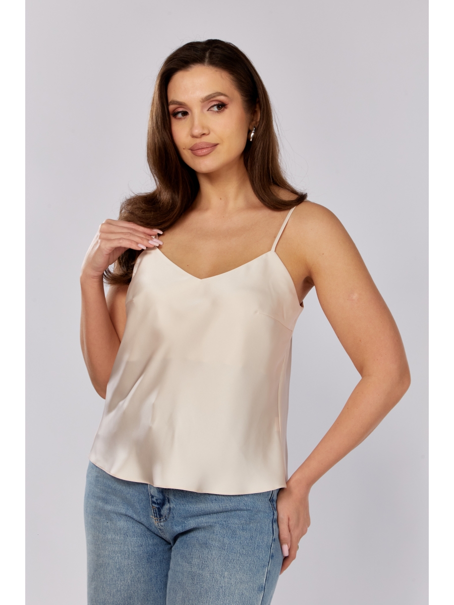 Оформить заказ →Топ из атласной ткани, покроенный по косой. По переду нагрудные вытачки. Вырез горловины фигурный . Бретели могут регулироваться.