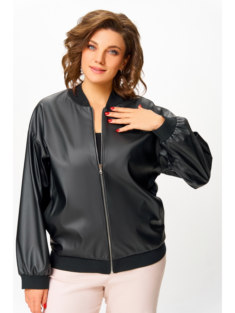 Оформить заказ →Бомбер женский из мягкой экокожи на подкладке свободного кроя со спущенной линией плеча и с центральной застёжкой на декоративную металлическую молнию. Полочка с отрезными бочками и карманами в швах. Горловина округлая со стойкой из трикотажного довяза. Рукав длинный. По низу рукава и изделия - довяз.