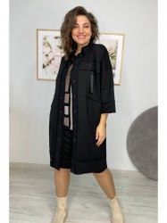 Кардиган женский прямого силуэта из трикотажной ткани (двунитка-футер). На полочке и спинке расположены декоративные, необработанные швы. В верхней и нижней части переда есть настрочные элементы с печатью и тесьмой. По переду изделия карманы. Спинка со средним швом и кокеткой. На кокетке расположен элемент с печатью и тесьмой. Рукав спущенный с манжетой. Вырез горловины оформлен стойкой. По переду изделия планка с кнопками.
