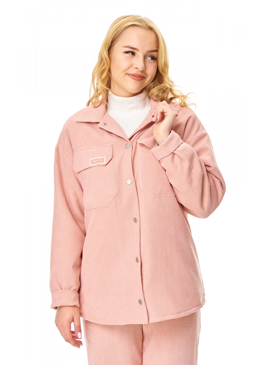 Куртка-рубашка из бархатистого микро-вельвета в нежном цвете.