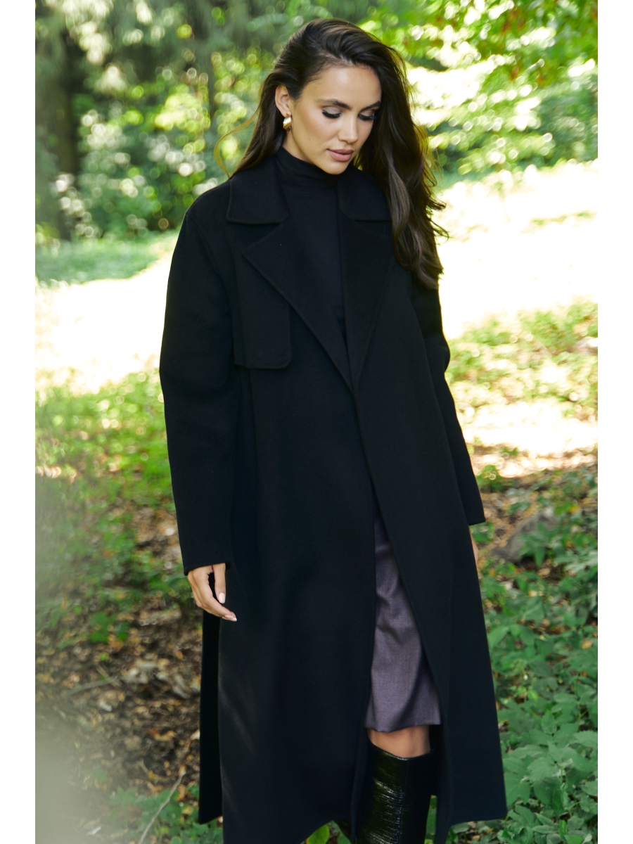 Пальто женское выполнено в классическом черном цвете, что делает его универсальной основой любого гардероба. Оно легко сочетается с деловой одеждой, повседневными образами и даже с вечерними нарядами. Черное пальто всегда было и остается символом утонченности. Пальто женское, прямого силуэта, из пальтовой ткани, на подкладке, со смещенной относительно центра переда застежкой на 3 пуговицы, (размер и цвет фурнитуры может незначительно отличаться от фото), предназначено для повседневной носки. Пальто со съемным поясом с пряжкой.