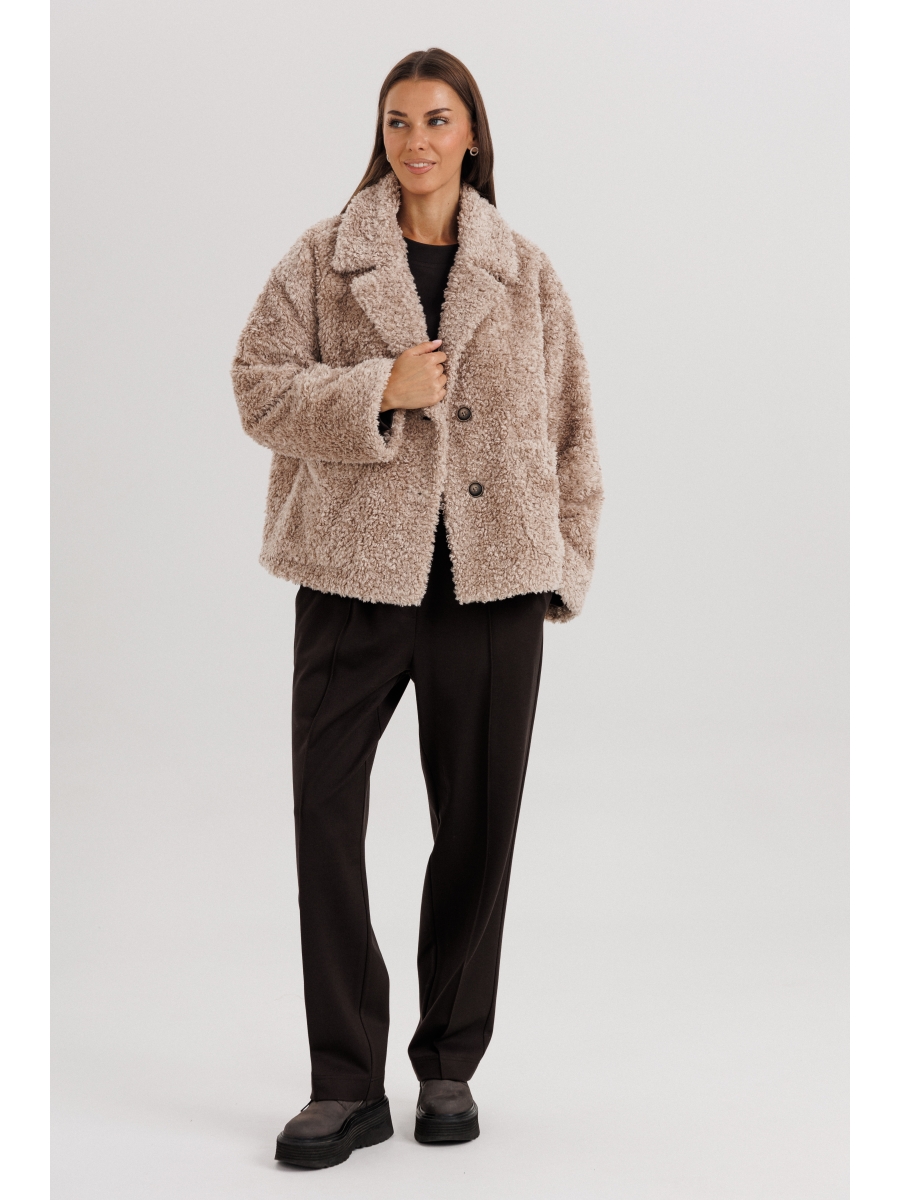 Модель выполнена с однобортной застёжкой на пуговицы, широким отложным воротником и удобными накладными карманами. Универсальный бежевый оттенок легко сочетается с различными элементами гардероба: будь то классические брюки, джинсы или романтичные платья.