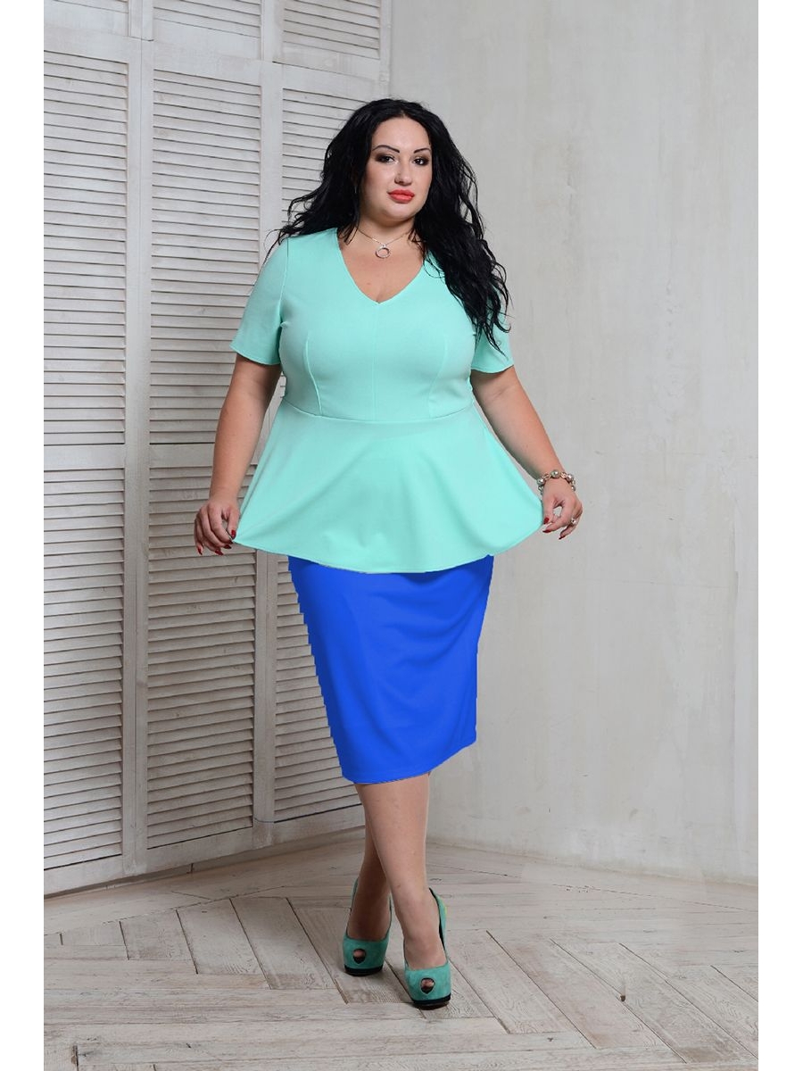 Классическая юбка-карандаш, зауженная к низу, из василькового эластичного крепа на подкладке. Верх на широкой резинке, не стесняющей движение.