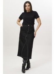 Джинсовая юбка Ma Сhérie длиной макси. Пояс притачной, застежка на молнию с гульфиком и петлю-пуговицу. Спереди и сзади функциональные карманы. Передняя половинка юбки с подрезами, задняя со средним швом. Все швы юбки декорированы отделочной строчкой.