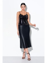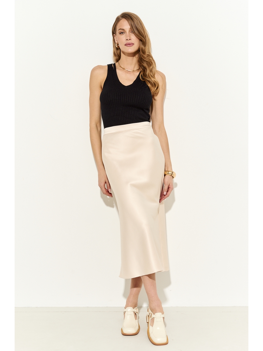Оформить заказ →Юбка миди прилегающего силуэта из струящейся сатиновой ткани с добавлением шелка; пояс притачной, в боковые швы которого вставлена резинка для лучшего прилегания; застежка на молнию, петлю и пуговицу.