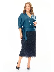 Юбка из плотного черного кружева на красной саржевой подкладке зауженная к низу с разрезом по спинке. Застежка «потайная молния» по среднему шву спинки. Верх на обтачке.