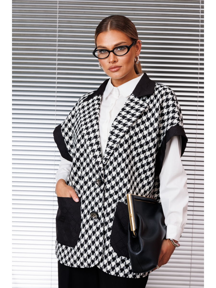 Бренд белорусской женской одежды больших размеров Anastasia представляет жилет женский. Подойдет для повседневной носки (работа, офис, прогулки). Достаточно дополнить его соответствующими предметами из вашего гардероба: блузка, майка, водолазка, гольф, свитер, лонгслив, свитшот. Жилет женский из пальтовой ткани, без подкладки. Модель прямого силуэта. По переду рисунок идет по косой. Воротник классической формы, застежка на петли и пуговицы. В качестве декора: воротник, накладные карманы и бейка проймы - из стеганной ткани. Это повседневный вариант на каждый день для занятий в школе или для офиса, на работу или на прогулку. Наденьте его на деловую встречу, официальное мероприятие, школьное торжество. Модель подойдёт для образа в университет или колледж. Этот предмет одежды подчеркнет вашу элегантность и сделает образ более женственным.