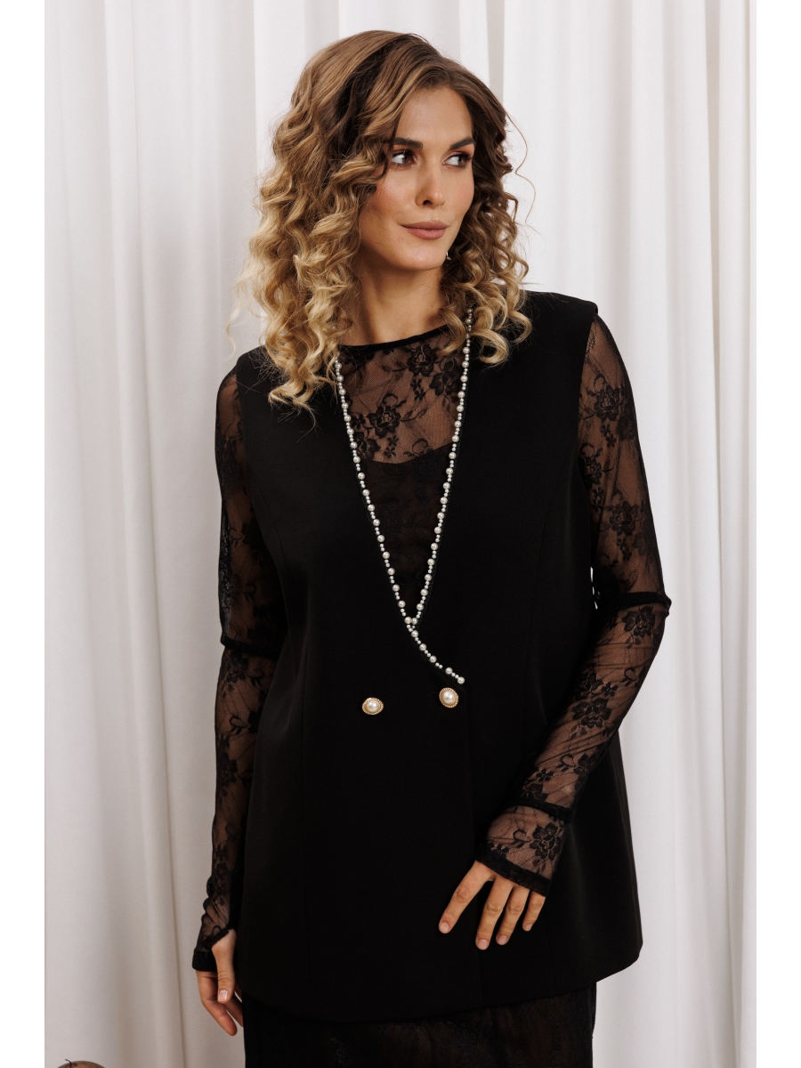 Оформить заказ →Жилет прямого силуэта выполнен из костюмной ткани. Перед с рельефами и застежкой на 2 петли и пуговицы. Спинка с рельефами и средним швом. Жилет на подкладке.